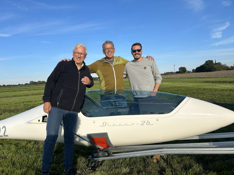 18.10.2025  Glückwunsch zu ersten Alleinflug  und der bestandenen A-Prüfung. Jan, der bereits die Lizenz für das Führen von Motor- und Ultraleichtflugzeugen hat, nun auf dem Weg ist, die Lizenz für die „Königsklasse im Luftsport“  – dem Segelflug – zu erwerben.